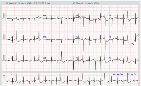 例:孕35周+3,胎儿心电图检测示频发室性早搏。出生后描记新生儿心电图,窦性心律,频发室性早搏