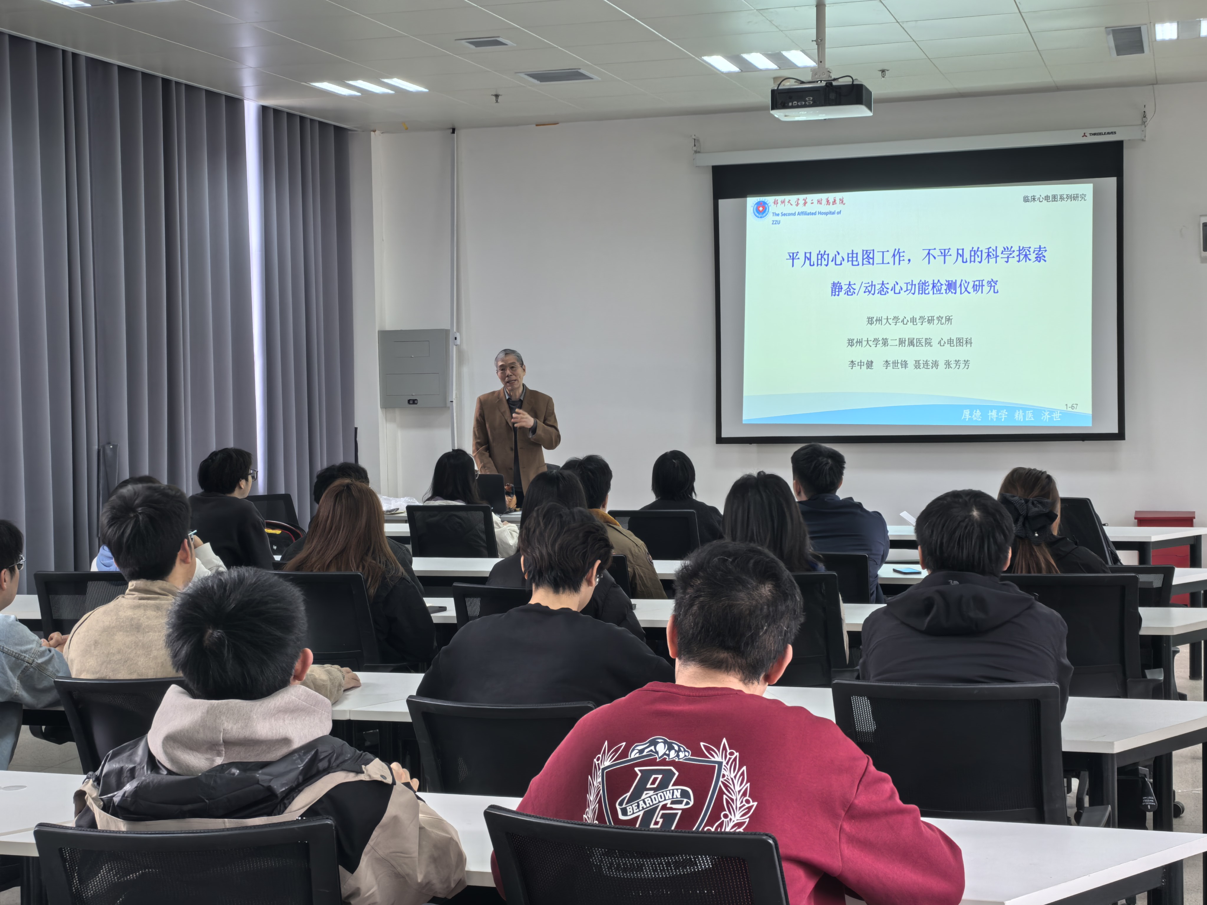 在学术报告环节,李中健教授以“静态/动态心功能检测仪研究”为主线,系统介绍了团队在临床心电图领域的最新探索。他从临床痛点出发,阐述了心功能检测技术的创新思路、研究方法及产业化前景,鼓励青年学子将基础研究与临床需求紧密结合,在心电科学这片“平凡”的沃土上做出“不平凡”的贡献。报告内容深入浅出,既有技术细节的剖析,又有科研情怀的传递,赢得了在场师生的热烈反响。